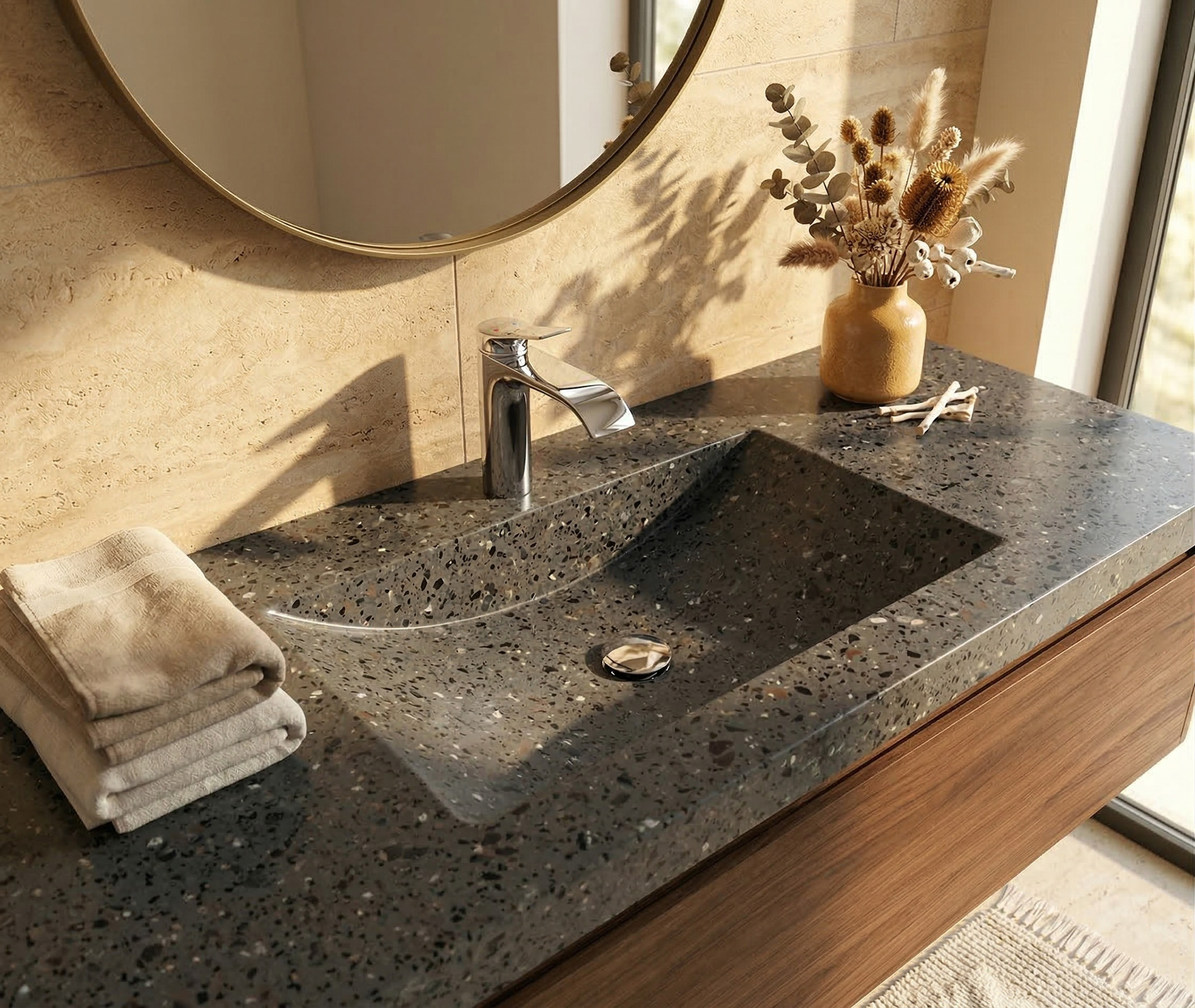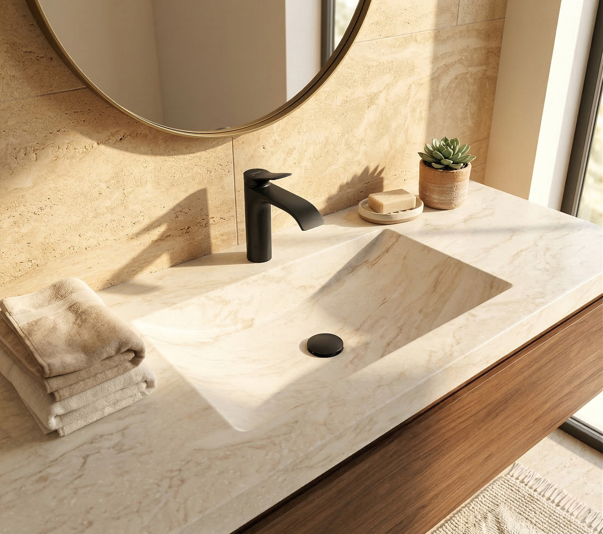 The hansgrohe Vivenis 110 single-lever basin mixer features an elegant, flowing design that brings a refined look to modern bathrooms. Its ComfortZone 110 offers generous space at the washbasin, while the wide WaterfallStream spray creates a soft, natural water flow for a pleasant washing experience. With EcoSmart technology limiting water consumption to 5 l/min and a convenient pop-up waste set, it combines comfort with water-saving efficiency.